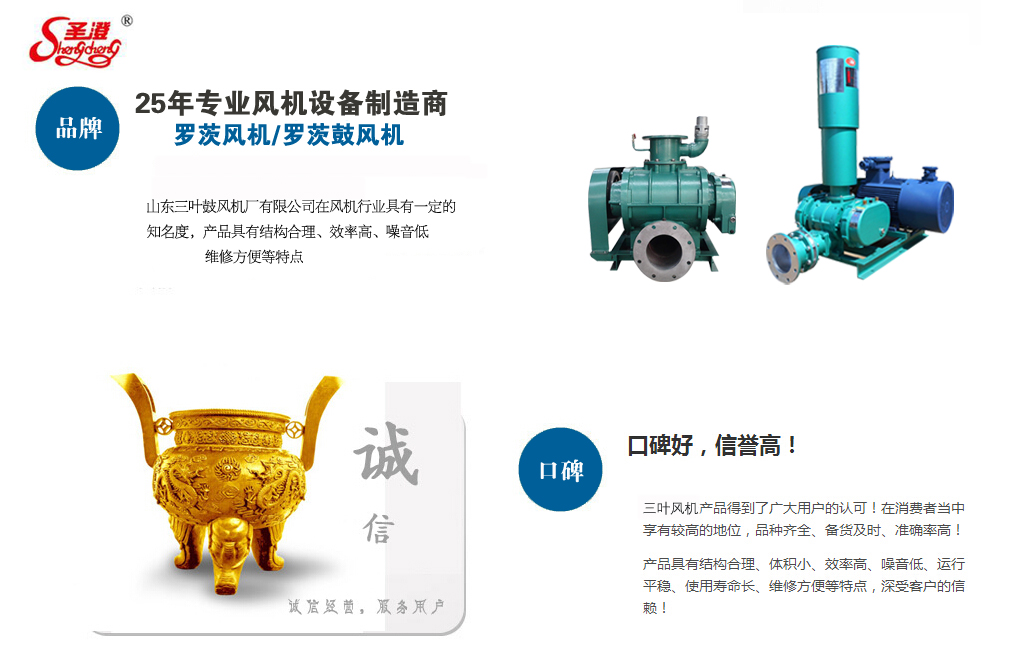 山東三葉鼓風(fēng)機(jī)廠(chǎng)有限公司(原章丘市三葉鼓風(fēng)機(jī)廠(chǎng))創(chuàng)建于1990年,是專(zhuān)業(yè)生產(chǎn)羅茨鼓風(fēng)機(jī)、羅茨真空泵、增壓泵以及回轉(zhuǎn)式風(fēng)機(jī)系列產(chǎn)品的廠(chǎng)家,南靠309國(guó)道、膠濟(jì)鐵路線(xiàn),北接濟(jì)青高速公路,地理位置優(yōu)越,交通便利。本公司本著“質(zhì)量第一、誠(chéng)信為本”的指導(dǎo)方針,經(jīng)過(guò)十多年的發(fā)展,以過(guò)硬的產(chǎn)品質(zhì)量,及時(shí)完善的售后服務(wù)已在市場(chǎng)中占領(lǐng)一席之地。本公司生產(chǎn)的風(fēng)機(jī)噪音低、高效節(jié)能、外型美觀(guān);風(fēng)機(jī)進(jìn)、排氣口采用螺旋形狀,使進(jìn)排風(fēng)過(guò)程按螺旋線(xiàn)的方向循序切入。產(chǎn)品具有結(jié)構(gòu)合理、體積小、效率高、噪音低、運(yùn)轉(zhuǎn)平穩(wěn)、使用壽命長(zhǎng)、維修方便等特點(diǎn)。歡迎各界朋友親臨公司洽談業(yè)務(wù),指導(dǎo)工作,攜手并進(jìn)共創(chuàng)美好未來(lái)!